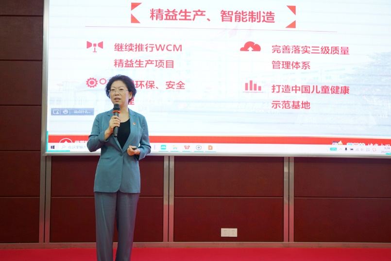刘景萍董事长引用席大大总书记在2022年博鳌亚洲论坛上的重要讲话勉励全体与会人员,在海南自贸港建设的机遇期,认真学习贯彻落实省第八次党代会精神,坚持党建引领企业发展,将AG贵宾会药业集团打造成中国儿童健康领军企业。